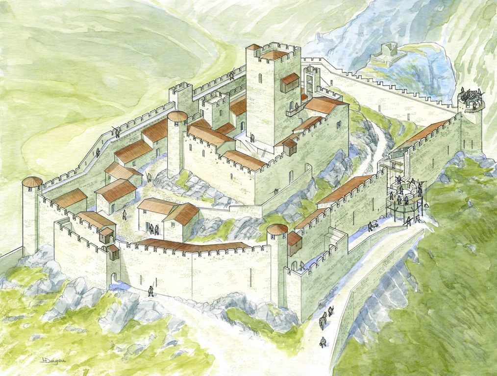 Reconstruction du château de Termes. Dessin Lionel Duigou.