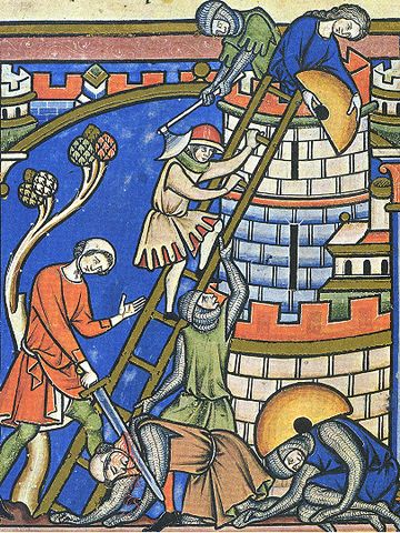 Pour franchir les murailles, une solution bien connue est l’utilisation des échelles. Cette technique est appelé échelade. Elle s'avère périlleuse car les défenseurs postés sur le chemin de ronde poussaient l'échelle pour la faire tomber, avec, ses assaillants.