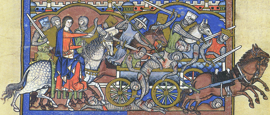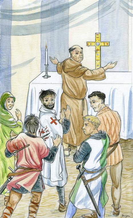 Simon de Montfort échappant à la mort. Dessin Lionel Duigou.