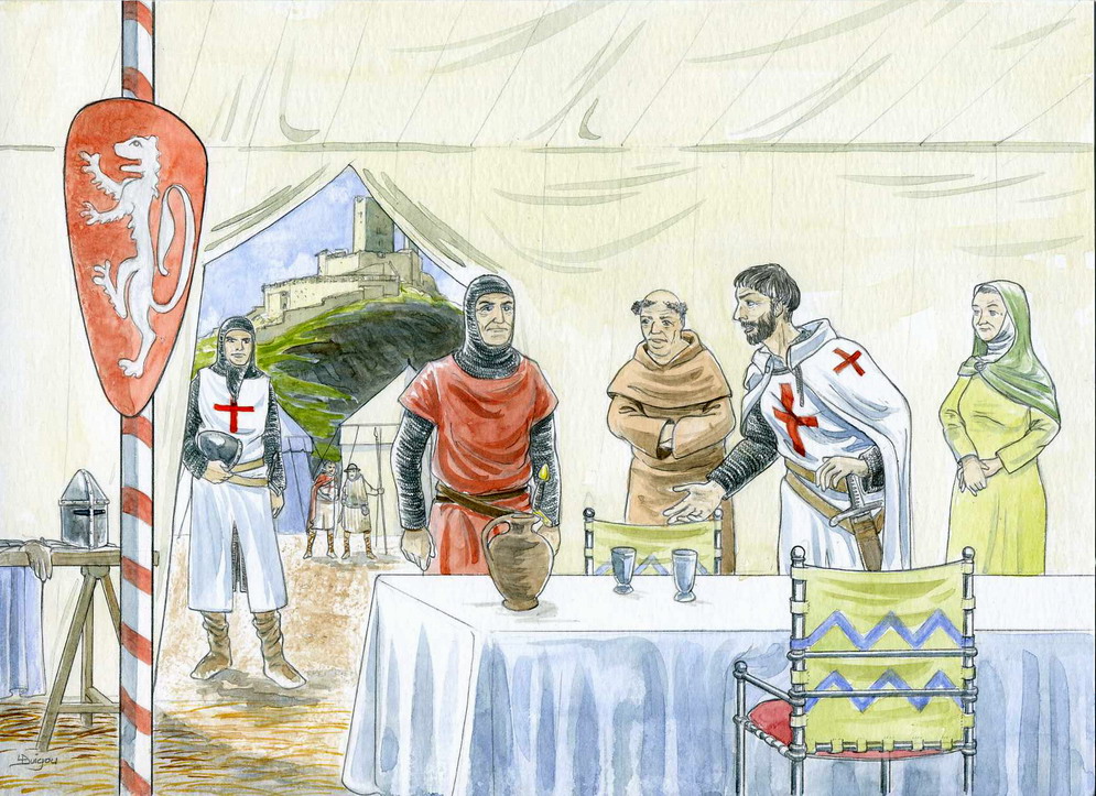 The two sides therefore each have their reasons to negotiate and an agreement is reached at the time of the talks. Raimond is to hand over his castle the following morning until Easter (about 5 months away).